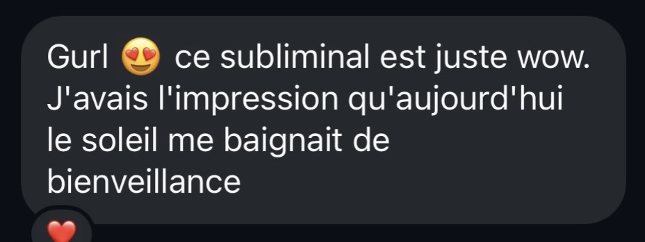 ✓ BONUS EXCLUSIF : un subliminal ultra-puissant pour un Glow Up Extrême, qui a déjà apporté des résultats en moins de 24h à mes clientes !